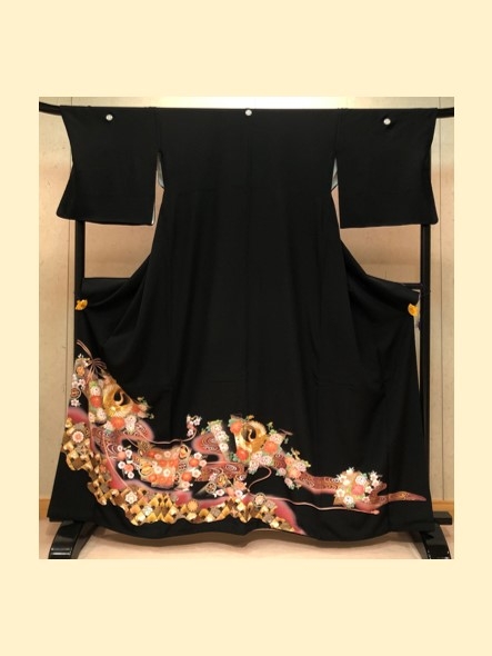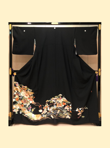 結婚式の参列衣装に相応しい吉祥文様があしらわれた正絹の黒留袖は、高級感と肌触りの良さを兼ねております。
