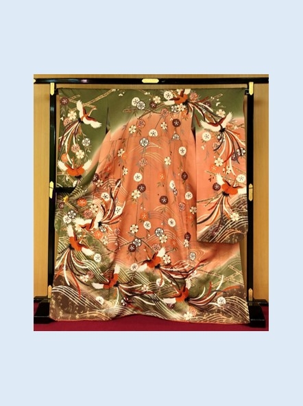 0557 更花鳥(着丈、裄長め カラー:ブラウン)