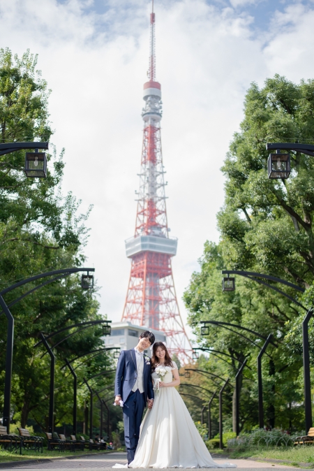 "AZUMA-DRESS"でお選びいただいたドレス・タキシードを芝公園などの屋外で撮影するフォトプランです。