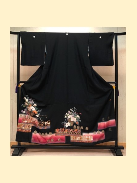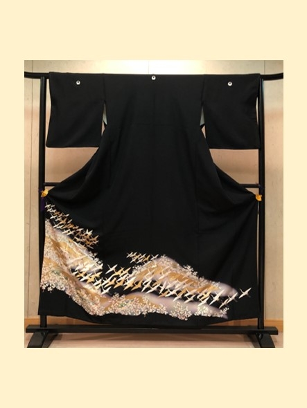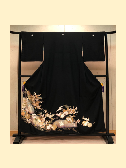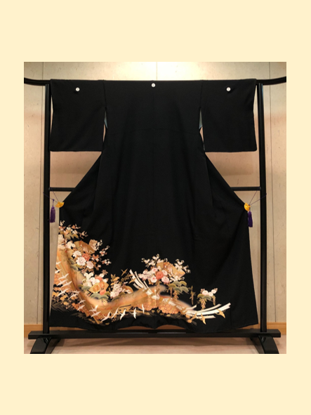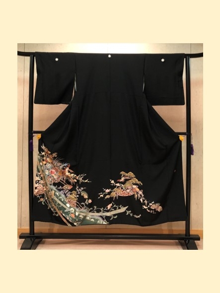 結婚式の参列衣装に相応しい吉祥文様があしらわれた正絹の黒留袖は、高級感と肌触りの良さを兼ねております。