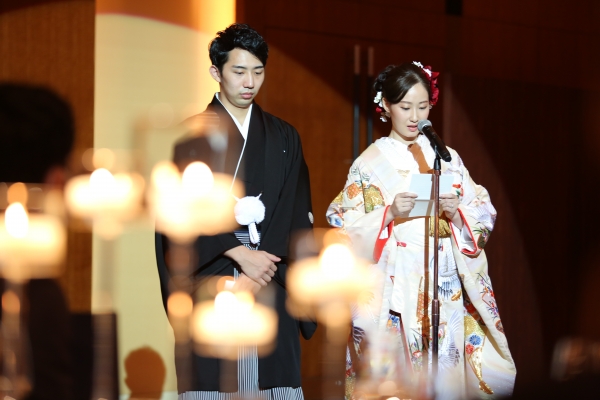 この度のご婚儀、誠におめでとうございます。衣裳のご利用と画像の掲載につきまして、厚く御礼申しあげます。お二人の凛としたお姿にすっかり見惚れてしまいました。幸せな画像にスタッフ一同嬉しい気持ちになります。