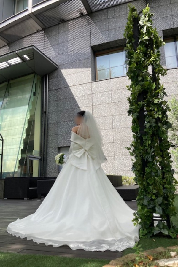 目移りしてばかりのドレス選びでしたが、ロールカラーのデザインに絞ってI様(スタッフ)にご提案いただたこちらのドレスがしっくりきて、デザインもとても気に入っており、アクセサリーや小物も併せて、本当に素敵なものに出会えたと、心より感謝しております。