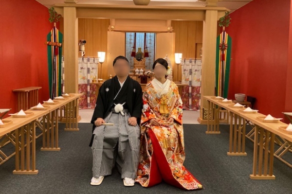 色鮮やかな色打掛と凛とした紋付袴のお姿