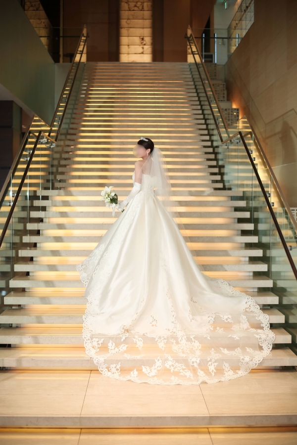 また、階段に映えるロングトレーンのショットや館内でのドレス・タキシードのお姿も