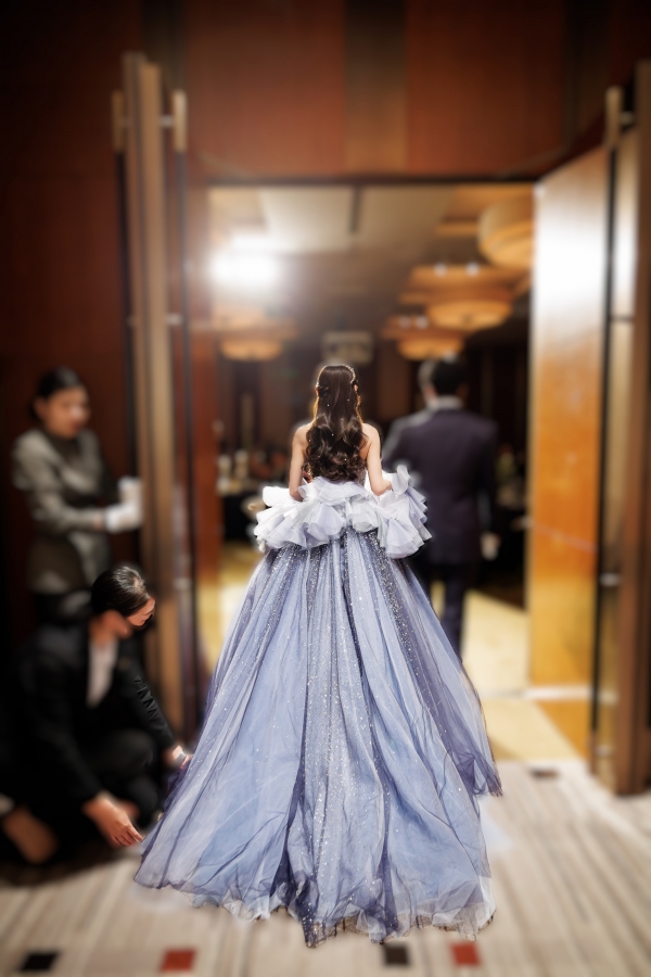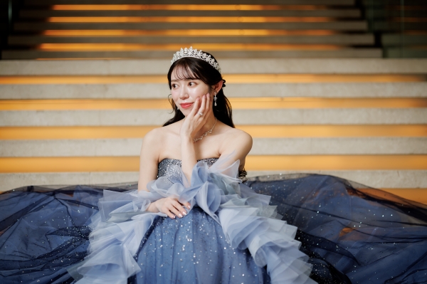 鮮やかなブルードレス、グリッターの輝きがとても素敵にお似合いで見惚れております。